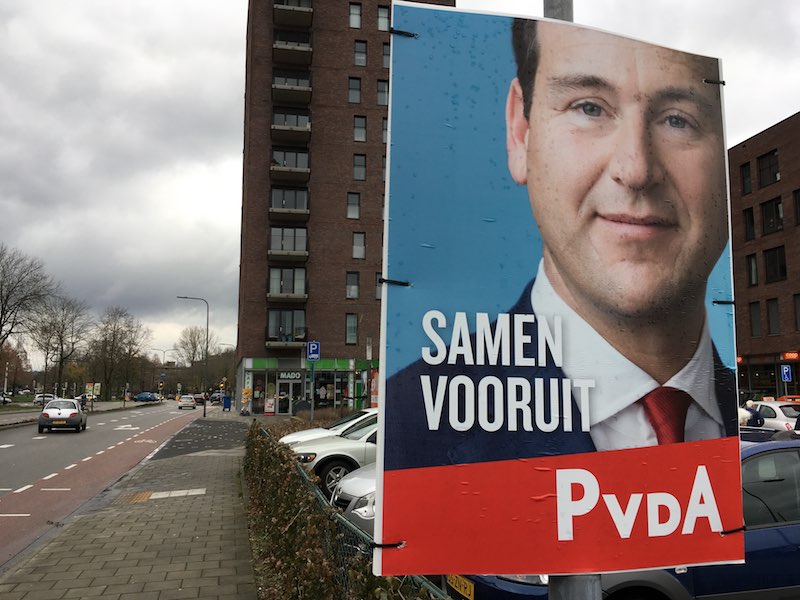 ‘Samen vooruit’ lijkt een slogan die voortvloeit uit de samenwerking tussen GroenLinks en PvdA. Maar deze slogan werd ook al gebruikt in 2017 met het hoofd van Lodewijk Asscher erbij (en misschien zelfs al wel eerder).
